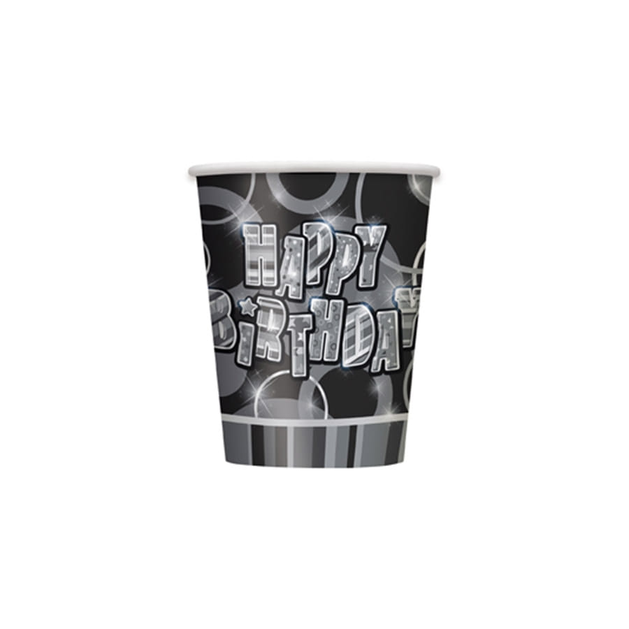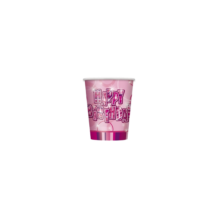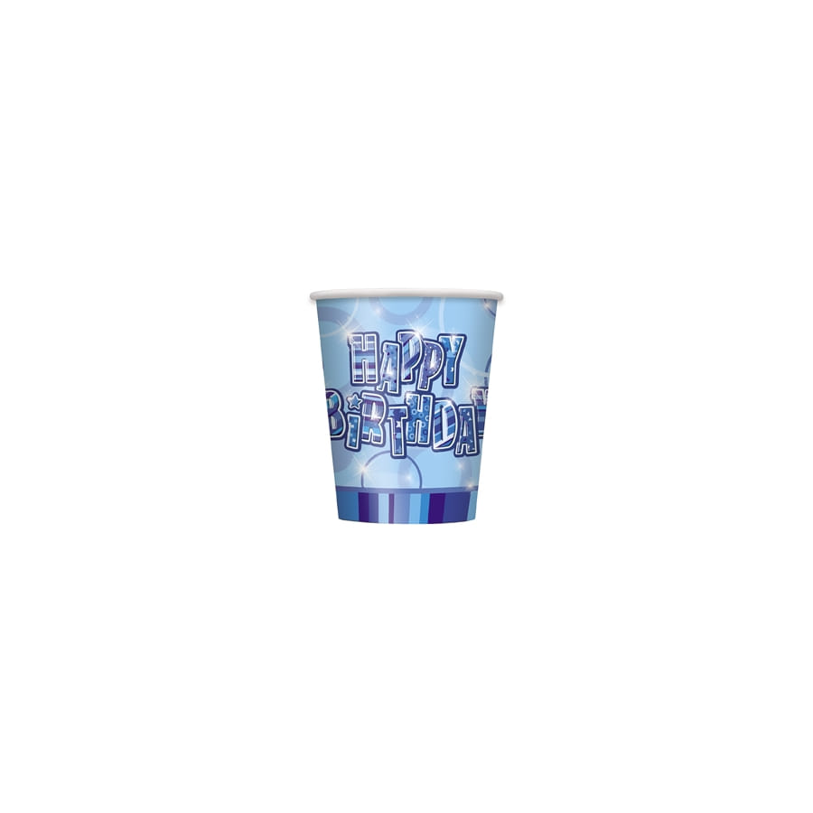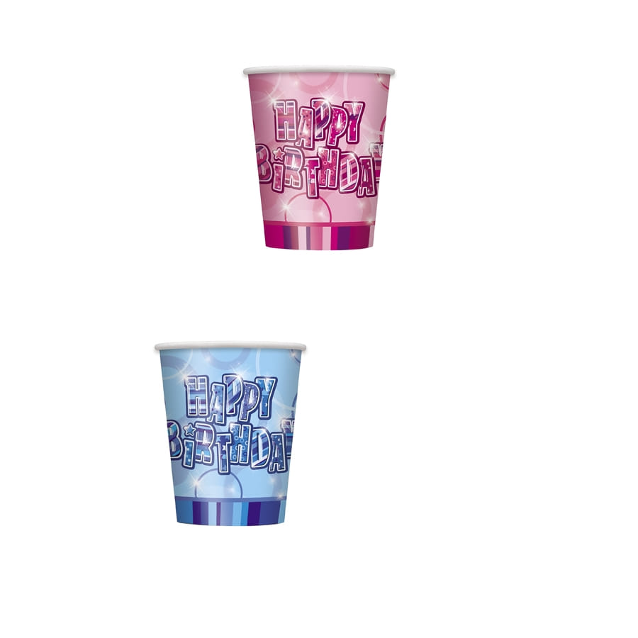 Savourez vos boissons dans un récipient spécial à l'occasion d'un anniversaire. L'article gobelet Happy Birthday vous sera fourni par paquet de 8. Il s'agit de gobelets jetables fabriqués en carton. De couleur rose, bleue ou noire, ils présentent tous l'inscription "happy birthday" imprimée en grandes lettres. Chaque gobelet possède une contenance de 260 ml.