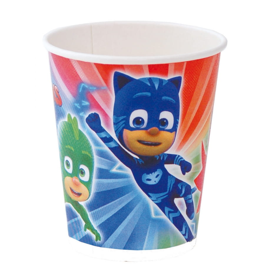 À l'occasion du goûter d'anniversaire de votre enfant fan des dessins animés, utilisez les gobelets Pyjamasques en carton.