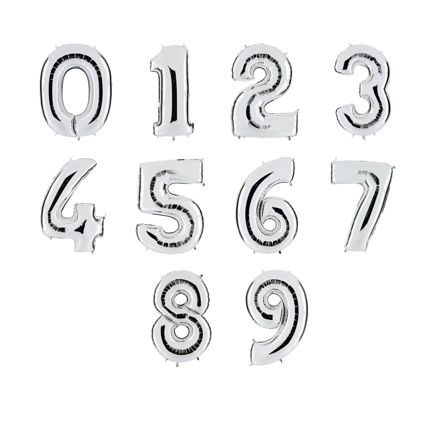 Avez-vous un chiffre fétiche ? Ou un anniversaire à fêter ? Eh bien, nous avons les ballons qu'il vous faut : ces grands ballons en forme de chiffre métallisé. Nous avons les chiffres 0, 1, 2, 3, 4, 5, 6, 7, 8 et 9 en stock et à vous de choisir les chiffres que vous voulez exposer à votre fête. La couleur est unique, nous avons du gris argenté pour tous les ballons. Chaque ballon fait 102 cm de haut, et est donc assez imposant. C'est pour cela qu'il vous faut choisir un endroit stratégique pour les mettre, à moins que vous vouliez en mettre partout, ce qui est aussi une bonne idée.