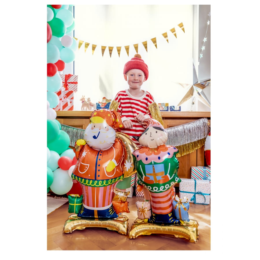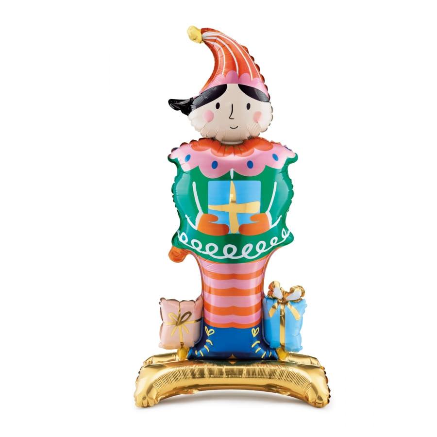 Ce grand ballon en forme de pantin de Noël dispose d'un pied qui vous permettra, une fois gonflé, de le conserver en position debout.
