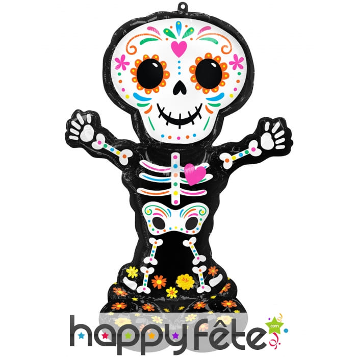 Fascinez les invités de votre prochain dia de los muertos avec le grand ballon squelette jour des morts de 1,32 m.