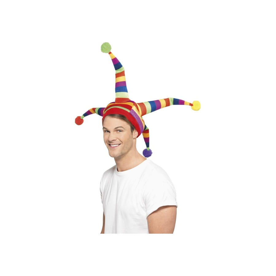 Nous vous proposons ce grand chapeau de fou du roi multicolore pour égayer vos fêtes. Il conviendra aussi bien aux hommes qu'aux femmes. Comme tous les chapeaux de bouffon ou fou du roi, celui-ci possède également des languettes, il a quatre longues languettes terminées par un pompon. Ce bonnet est à rayures horizontales multicolores. Parfait pour un carnaval, une soirée de cirque, un spectacle, une fête déguisée ou une animation.