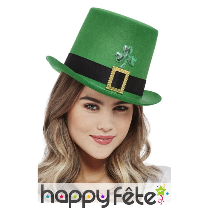 La Paddy's Day approche à grands pas, et c'est l'occasion de découvrir ce Grand haut de forme vert Saint Patrick avec trèfle.