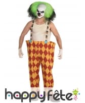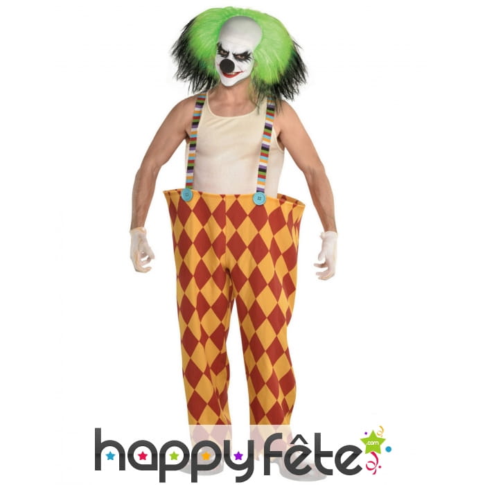Optez pour le grand pantalon de clown tueur avec perruque verte et incarnez un véritable psychopathe déjanté pour Halloween.
