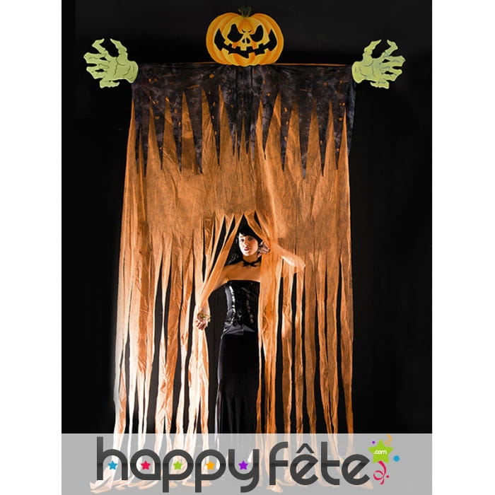 Spécialement conçu pour faire sensation la nuit d'Halloween, le grand rideau de porte citrouille de 3,5 m peaufinera les détails de votre déco macabre.