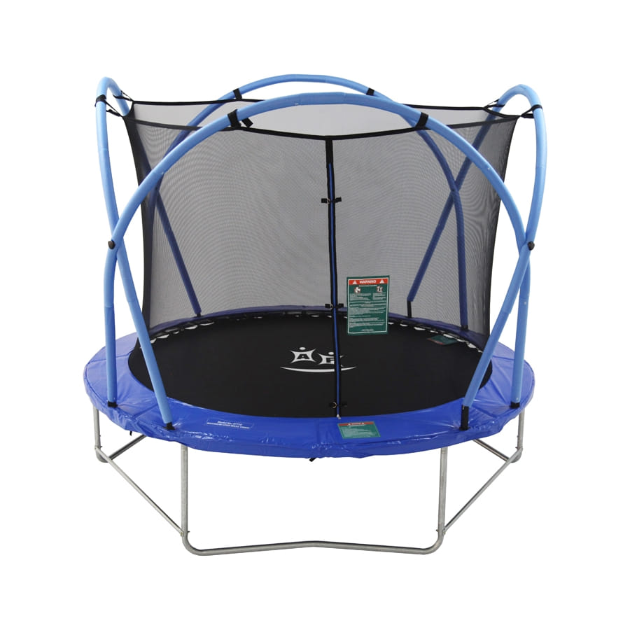 Système unique pour les passionnés de trampolines, voici le premier grand trampoline rond d'extérieur. Il dispose d'un système permettant de le ranger très facilement sans avoir à démonter les différents éléments qui le compose. Livré avec une bâche, il vous suffira de le démonter et de le recouvrir de sa bâche protectrice avant de le ranger pour une prochaine occasion. Trampoline breveté composé d'éléments très résistants (ressorts, arches, tapis). Il est également possible de vous procurer des ressorts de rechange (nous contacter via le formulaire de contact pour ce type de demande).