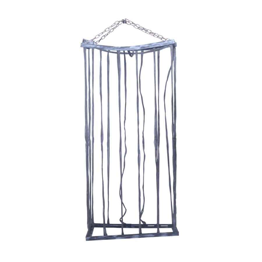 Le plus dangereux des prisonniers se cache dans la maison. Pour preuve, cette grande cage décorative de 2m est vide ! Penchez pour une cage très réaliste à l'occasion d'Halloween. Celle-ci est de couleur argent et fait 200 x 72 x 50 cm de dimension. Elle constitue le décor parfait pour prendre des photos dans votre déguisement d'Halloween.
