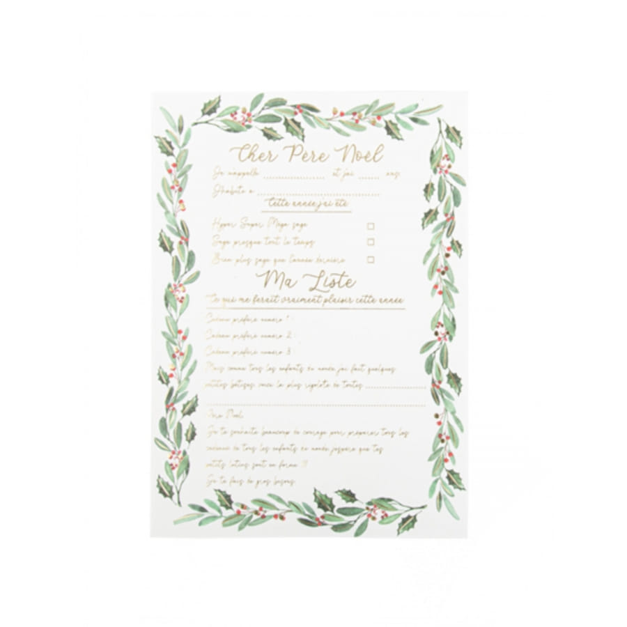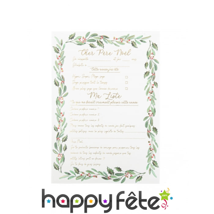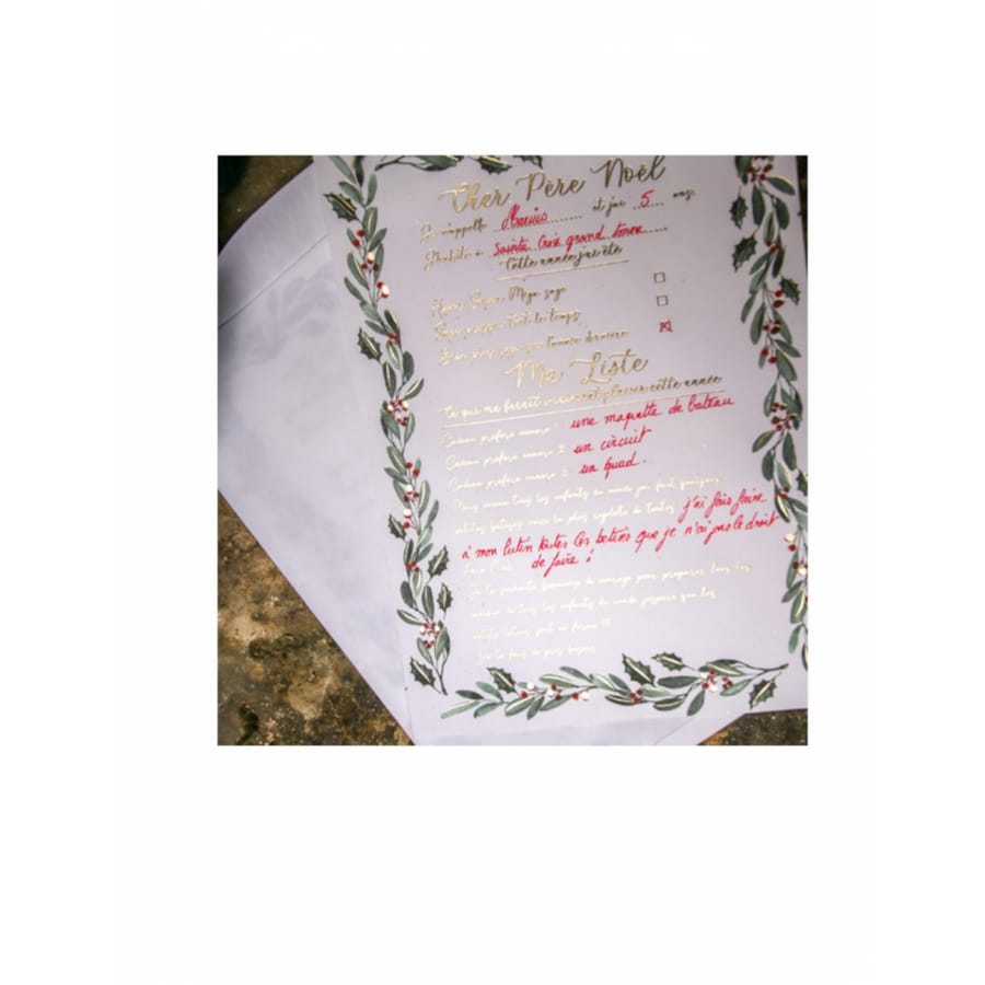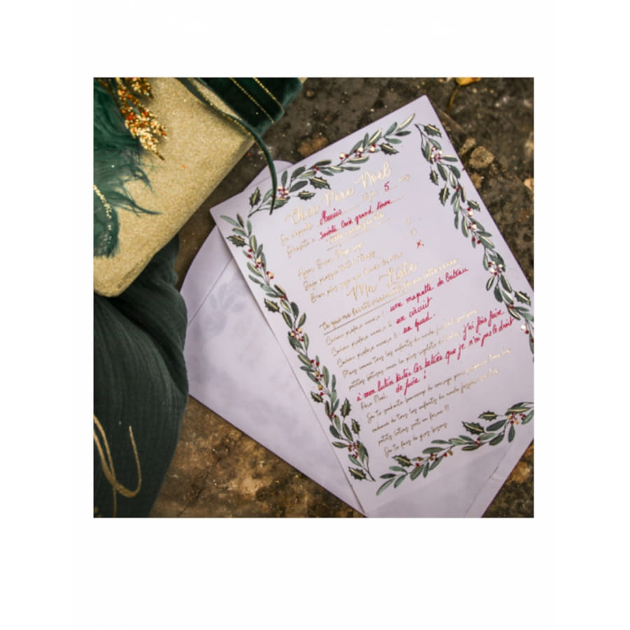 Le Père Noël est un homme (ou plutôt un elfe) de goût, on le sait bien. Alors, pour capter son attention, rien de tel qu'une lettre élégamment bordée de motifs houx, la plante emblématique des fêtes de fin d'année. Ça rajoute un petit côté festif et chaleureux qui ne manquera pas de faire sourire le bonhomme en rouge.
