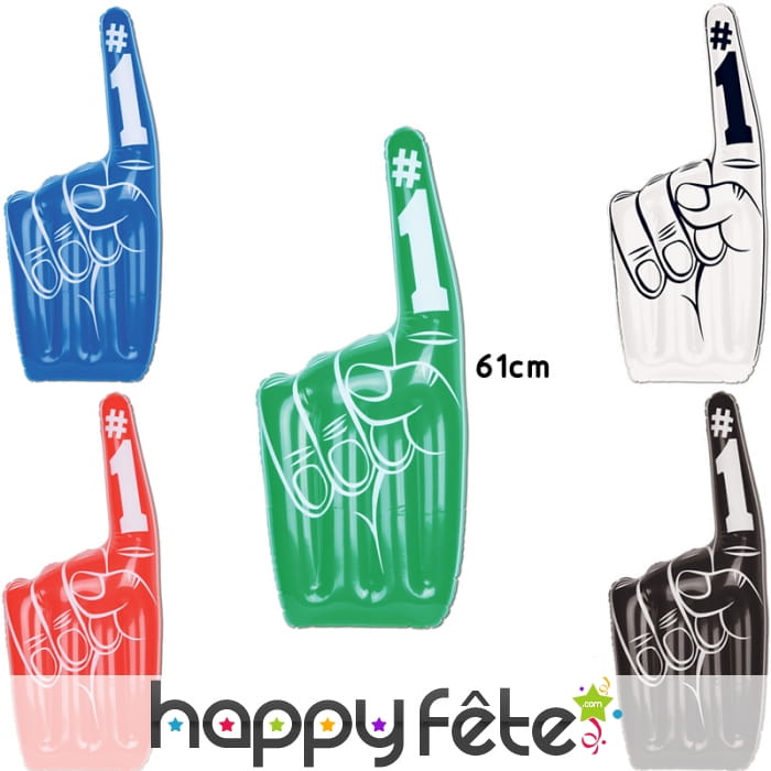 Supportez votre équipe avec une grande main gonflable de supporter ! Vous ne passerez pas inaperçu avec ce modèle de 61 cm de hauteur. De nature gonflable, il pourra être utilisé par les touts petits, mais également par vous messieurs dames. L'article est proposé dans plusieurs coloris : blanc, bleu, noir, rouge et vert.