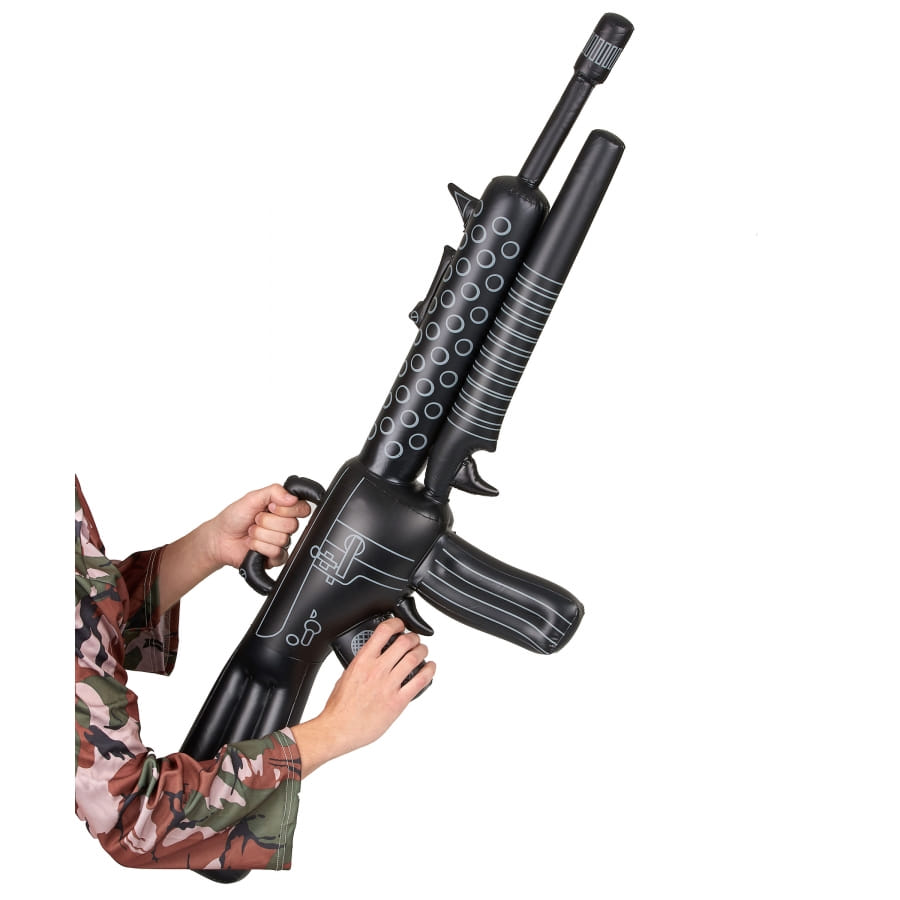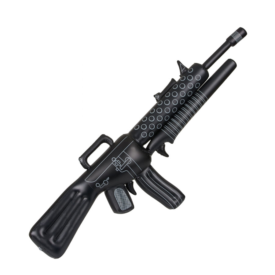 Il s'agit d'une reproduction d'un fusil mitrailleur, qui une fois gonflé, atteint une taille impressionnante qui ne risque pas de passer inaperçu !