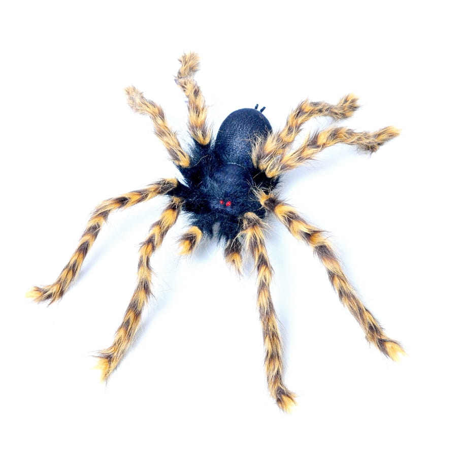 En guise de décoration ou pour jouer à faire peur aux autres, cette grande mygale velue avec pattes de couleur marron et yeux rouges a un corps en mousse rigide qui mesure 23 cm. Avec des pattes modulables en métal, l'ensemble mesure 72 cm. Les composants de ce produit avec leurs proportions respectives sont : 50% de polystyrène, 28% de polyester, 20% de fer, 2% de plastique.
