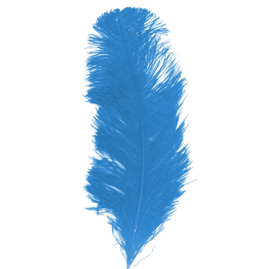 Grande plume d'autruche de couleur bleu, pour femme ou adolescente. Cet accessoire mesure environ 25 à 32 centimètres. Vous pourrez mettre cette plume dans vos cheveux ou l'épingler à vos vêtements par exemple.