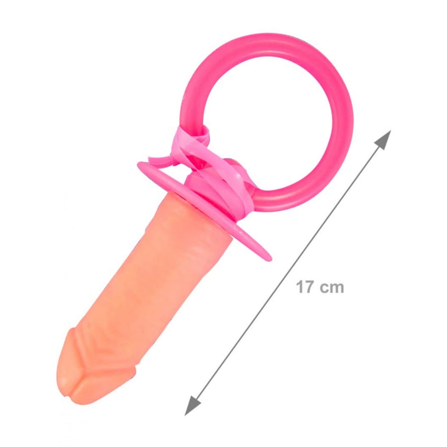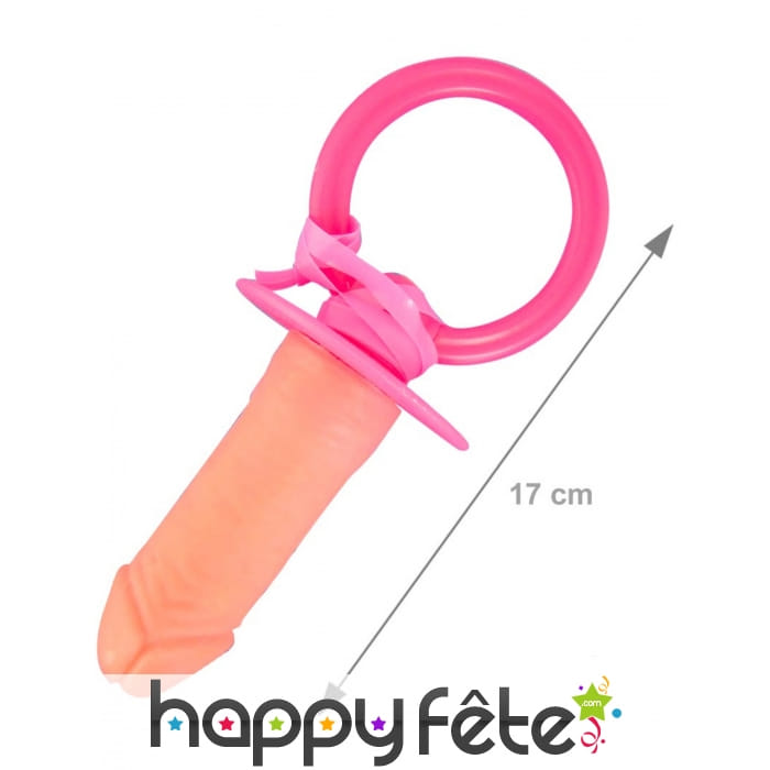 La grande sucette zizi sur tétine rose pour adulte est en plastique.