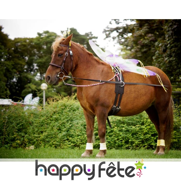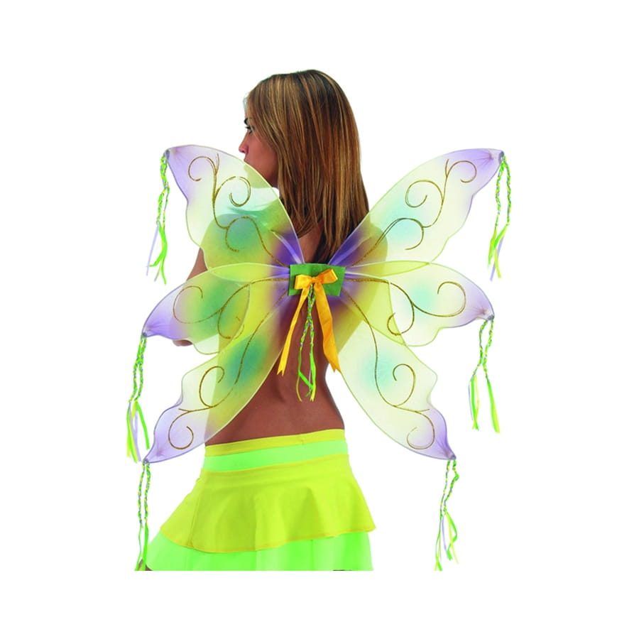 Pour un effet enchanteur et féérique, choisissez ces ailes de papillons agrémentées de fils dorés. Les tons des ailes varient entre jaune, violet et semi-transparent pour vous donner l'air d'être sortie tout droit d'un compte de fées. Les ailes mesurent 70 centimètres de hauteur sur une envergure de 80 centimètres.