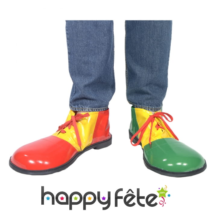 Vous aimez faire rire les enfants ? Ces grandes chaussures de clown pour adulte sont faites pour vous ! En fait, ce sont des chaussures géantes avec fermeture à lacet, richement colorées. Vous pourrez les porter avec vos propres chaussures pour un confort maximal. Elles sont adaptées pour un usage externe grâce à leurs semelles en caoutchouc. Pas de choix de la couleur qui peut différer de la photo.