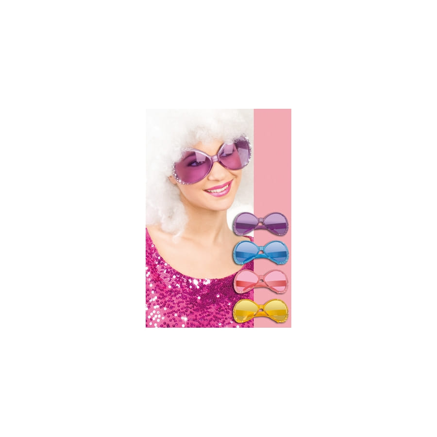Grande paire de lunettes Child Diamond. Lors de l'achat, vous ne pourrez choisir ni le modèle ni la couleur. Vous recevrez les lunettes dans une des couleurs présentées: bleu, jaune, rose ou violet. C'est un accessoire idéal pour compléter une tenue Bling Bling.