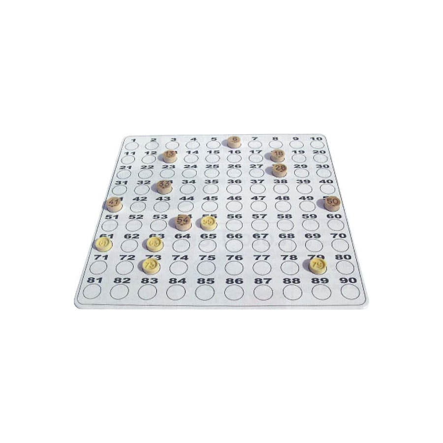 Plateau de contrôle pour jetons de référence LO25 et 26. Cette grille blanche et beige est numérotée de 1 à 90. Attendez le signal pour commencer à lire vos numéros!