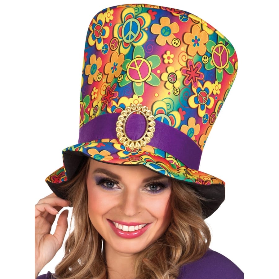 Le gros haut de forme coloré peace and love est un chapeau pour adulte.