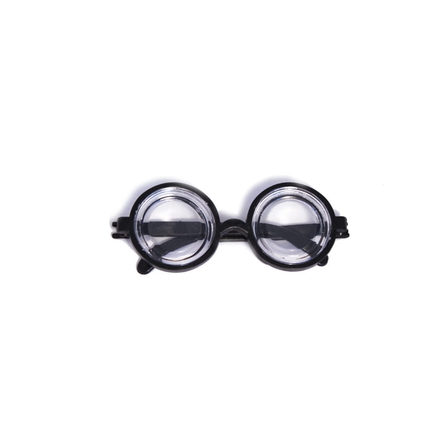Entièrement fabriquée en plastique, cette paire de lunettes présente une monture de forme ronde et de couleur noire ainsi que des verres sont très épais.