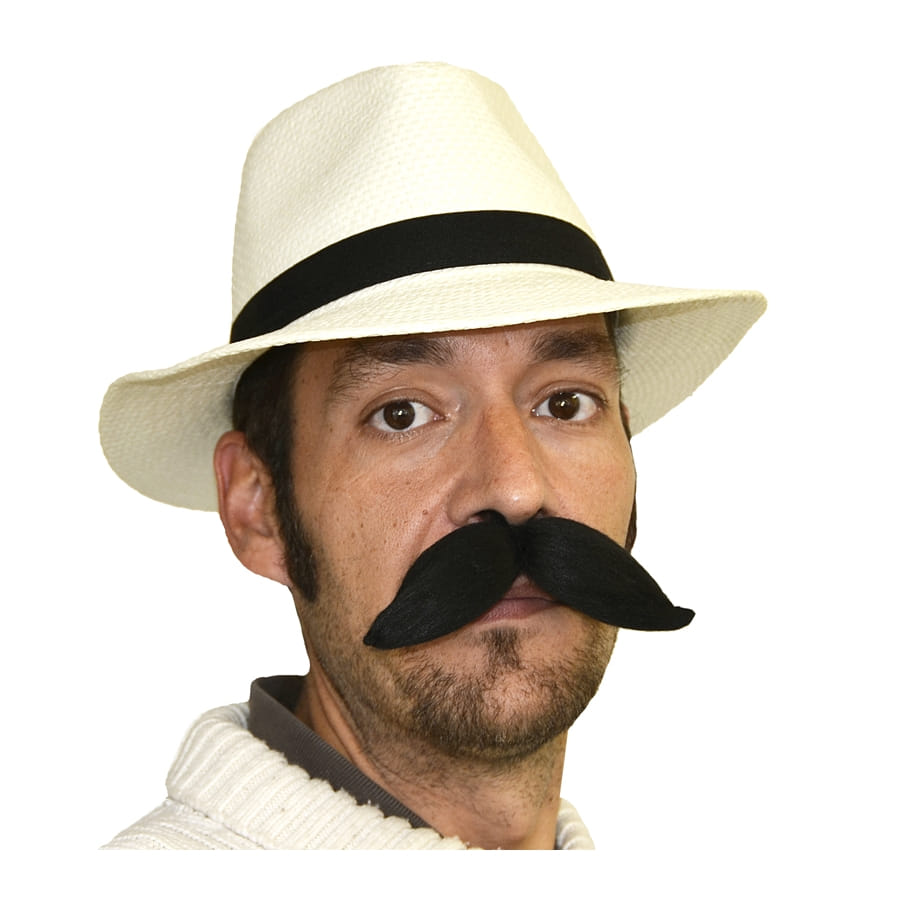 Cette grosse moustache en crêpe de couleur noire mesurant 15 cm n'est pas comme les autres puisqu'elle est malléable. En effet, elle possède une tige métallique à l'intérieur qui vous permettra de l'adapter à la forme que vous désirez. Pour homme, cette moustache est également munie d'un petit anneau en caoutchouc que vous insèrerez dans les narines pour la fixer. Vous pourrez, ensuite, l'utiliser pour accessoiriser un déguisement de cow-boy, de hippie, de mexicain, de gaulois etc.