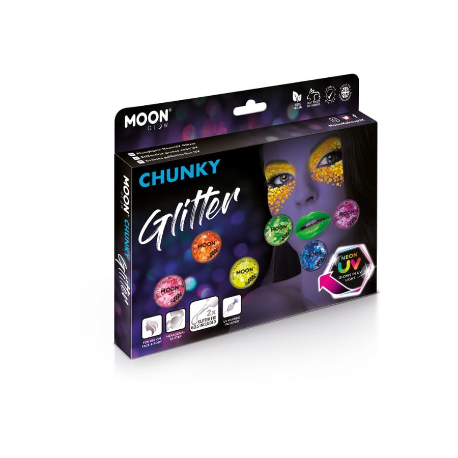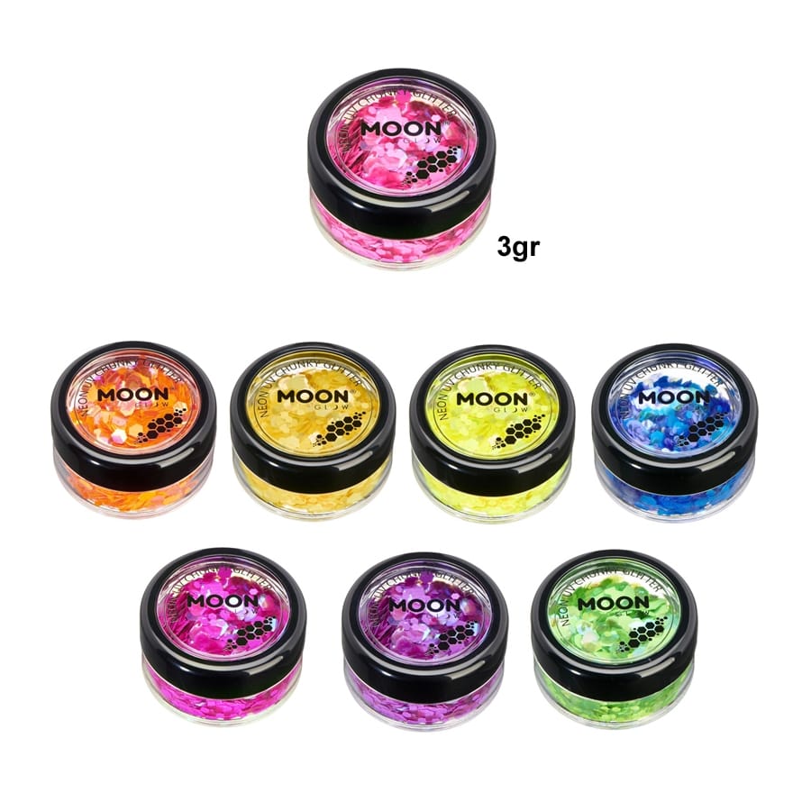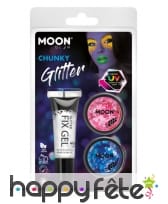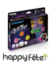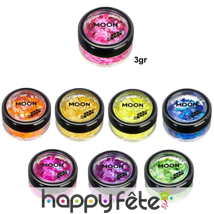 Ces Grosses paillettes cosmétiques UV en pot de 3gr sauront attirer l'attention lors de vos événements festifs.