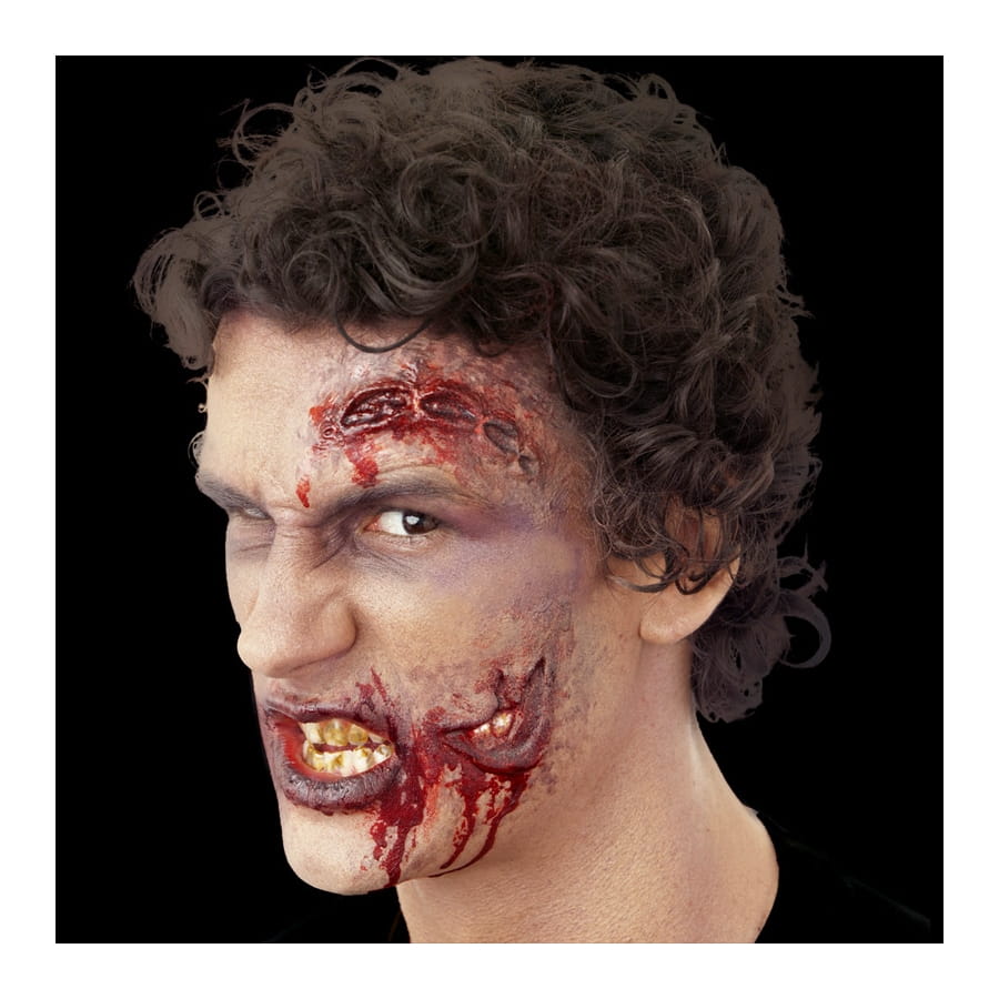 Cet effet spécial de qualité représente de grosses plaies béantes et sanguinolentes, à mettre sur le visage ou d'autres parties du corps. Ces fausses plaies sont en latex, livrées seules, sans maquillage ni colle. Le mode d'emploi est facile : une fois que vous avez choisi l'endroit où vous souhaitez mettre ces plaies, appliquez la colle sur la prothèse et/ou sur votre peau et tamponnez à l'aide de vos doigts ou d'une éponge à maquillage. Appliquez ensuite du latex liquide sur les bords pour une meilleure fixation et simulation. Le faux sang et le maquillage sont indispensables si vous voulez vraiment réussir le coup. Vous trouverez tout ce qu'il vous faut pour cela dans cette catégorie de produits cosmétiques. Pour une soirée sur le thème des films d'horreur ou une soirée Halloween parfaite, ne ratez pas cet article !