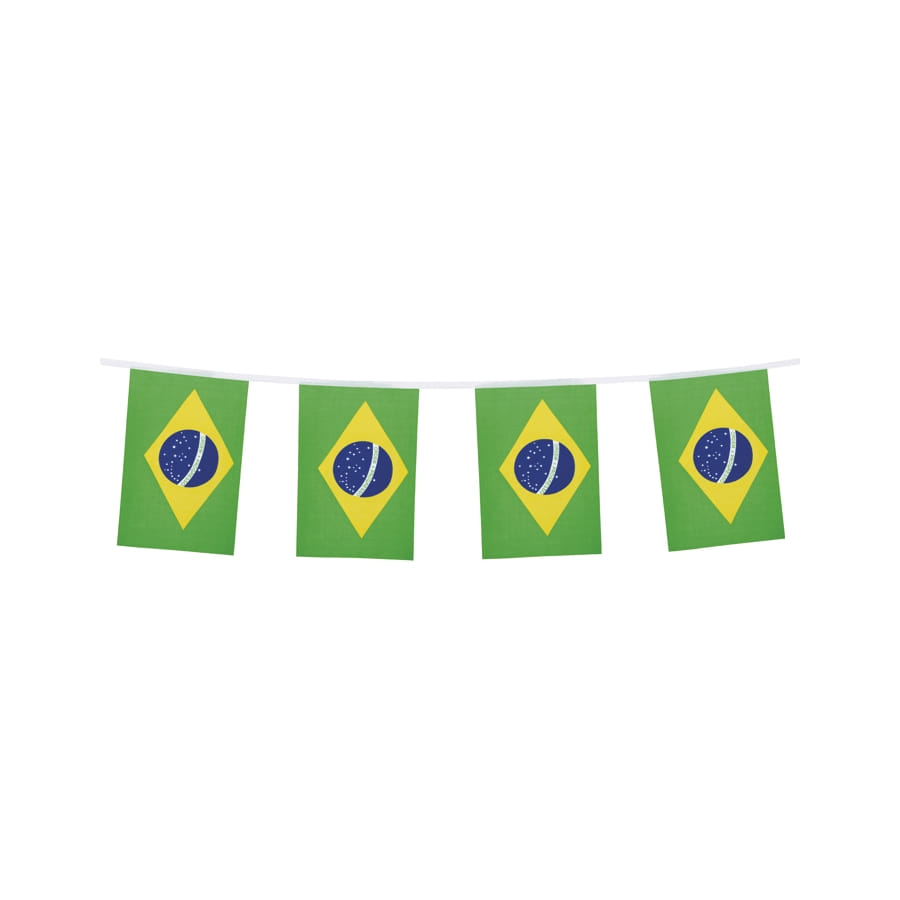 Retrouvez le Brésil dans toute sa splendeur à travers ses couleurs bleu, jaune et vert. Pour la fête nationale, la guirlande 10 drapeaux du brésil, 4m en tissu sera parfaite. Elle est composée de 10 petits pavillons de 20 x 30 cm de dimension chacun. Le modèle est en tissu et fait 4 m de longueur en tout.