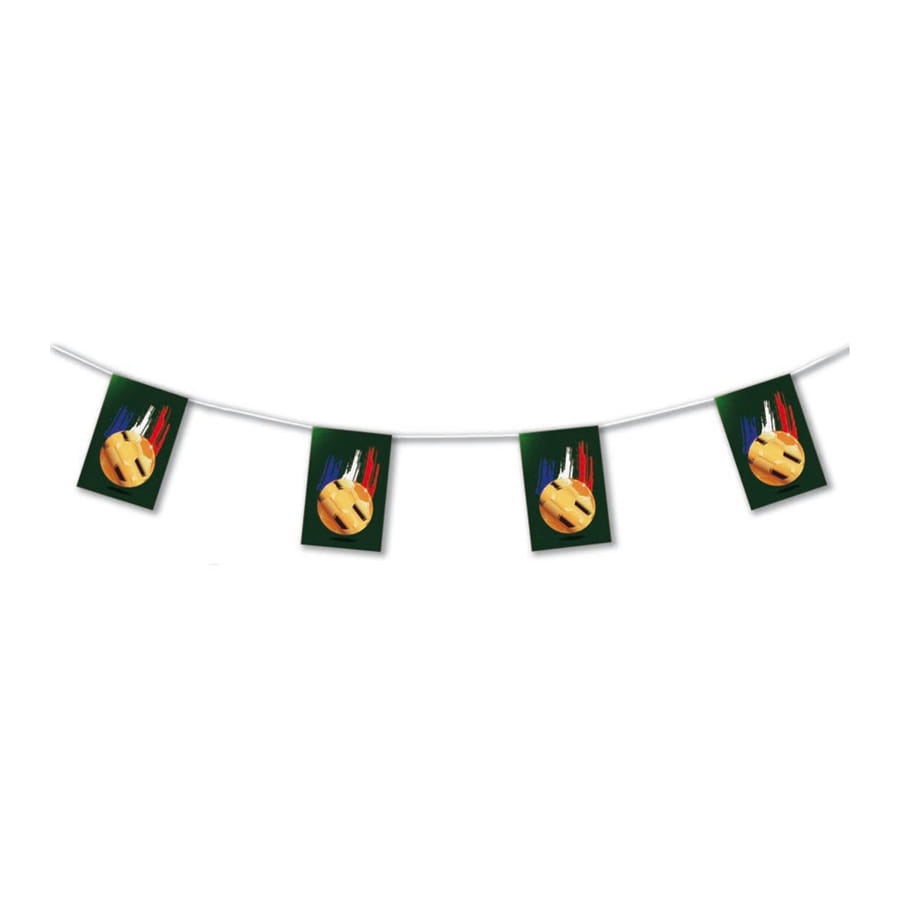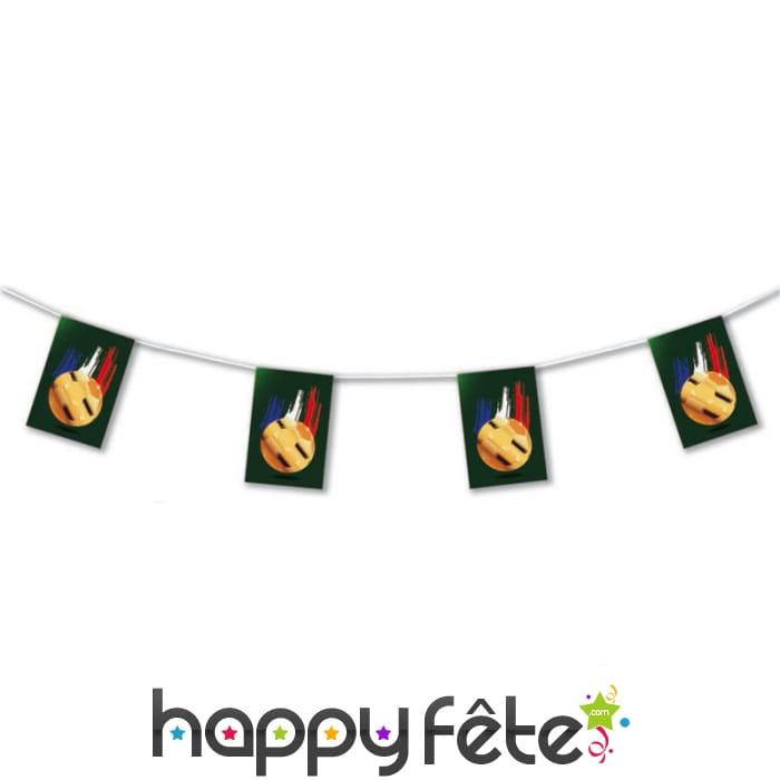 Pour décorer une salle de fête sur un thème sportif, ou encore un stade ou un gymnase lors d'un événement sportif, ne cherchez plus et choisissez cette guirlande ornées de ballons d'or. Elle fait 4 m de longueur et est constitué de 8 pavillons rectangulaires faisant 20 x 30 cm chacune.Guirlande ignifugée : ne brûle pas.