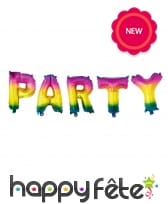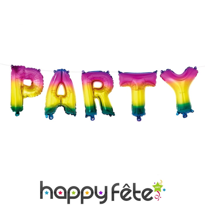 Ils ont la forme de lettres multicolores formant le mot "PARTY" (fête).