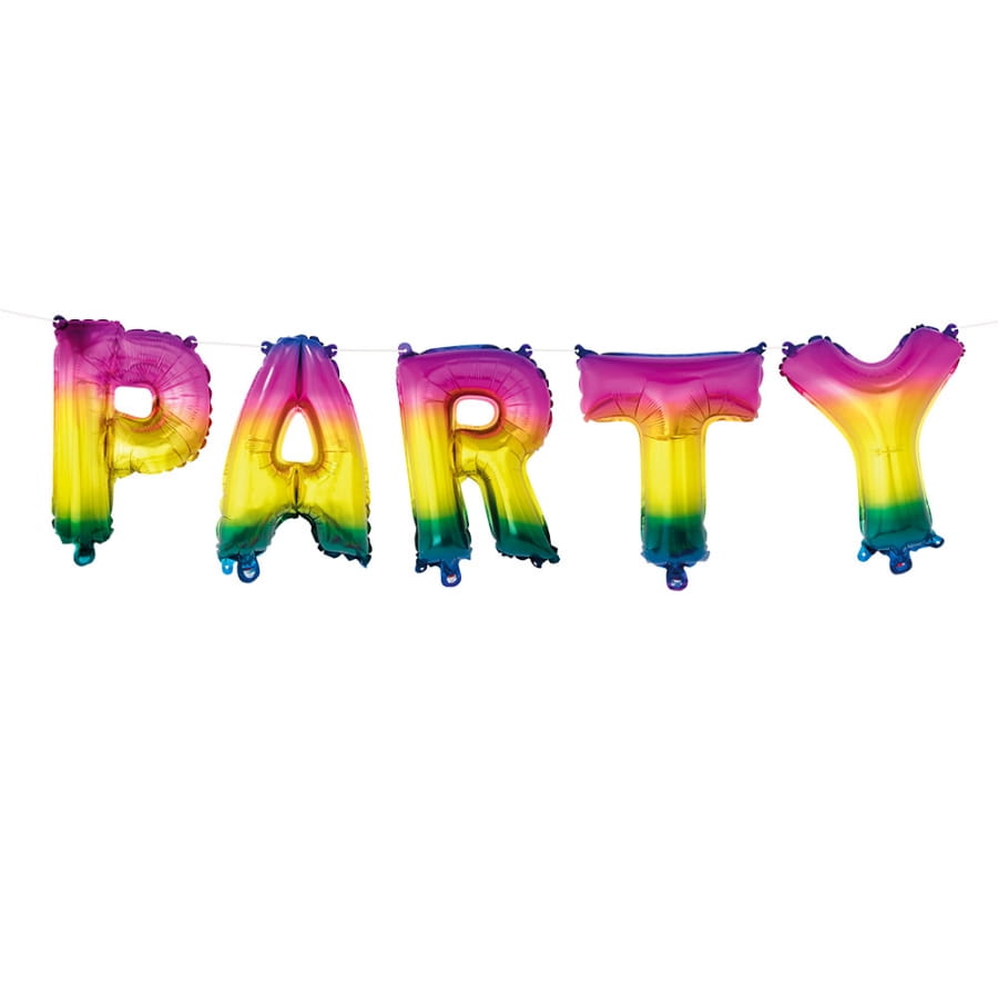 Ambiance débridée, couleurs de carnaval et saveurs exotiques, la guirlande ballons de lettres Party arc-en-ciel est parfaite pour enflammer vos soirées festives.
