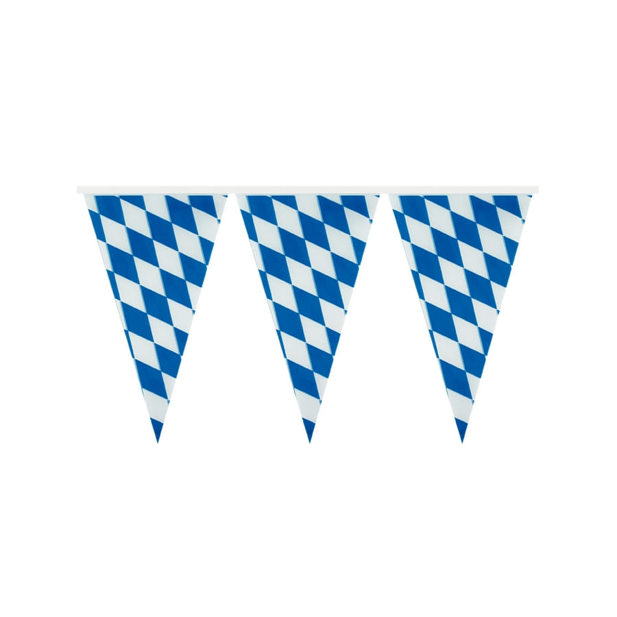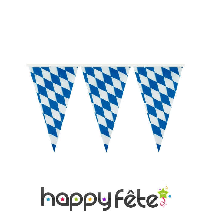 Célébrez l'Oktoberfest selon le folklore bavarois. Vous pouvez instaurer une décoration sympathique à l'aide de cette guirlande bavaroise de fanions bleus et blancs. Elle fait une longueur d'environ 4 mètres et elle est formée par une série de fanions de couleur bleue et blanche, faisant 26 cm de dimension chacun.