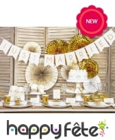 Stylée et chic, elle mesure 1,55 m de long et comporte des fanions blanc de 15 cm de haut, marqués de lettres dorées.