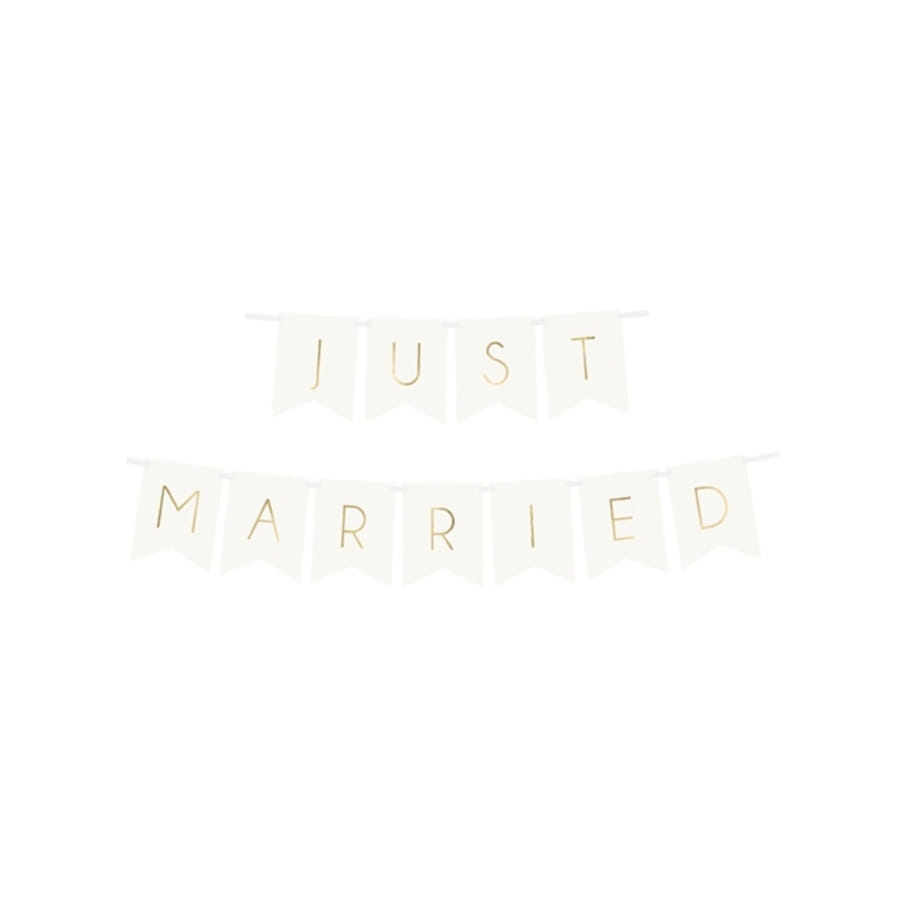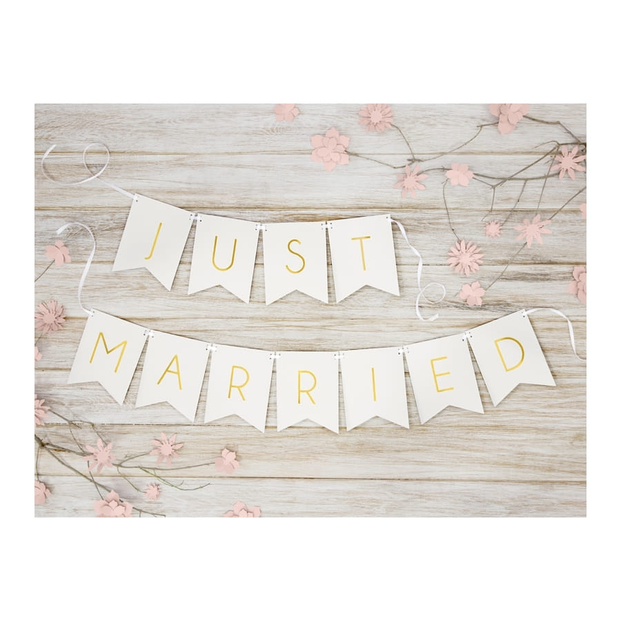 Exprimez votre créativité et votre goût pour le style en optant pour la guirlande blanche imprimée just married or 1,55 cm.