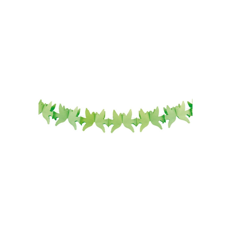 Qu'est ce c'est romantique, ces colombes qui volent au vent et qui s'embrassent en plein vol? Vous n'avez jamais vu ça? Eh bien regardez ces guirlandes! Ce sont des guirlandes en forme de colombes, de couleur vert anis. Une guirlande fait 4 m de longueur. Et la couleur verte donne un aspect naturel au décor, qui plus est.