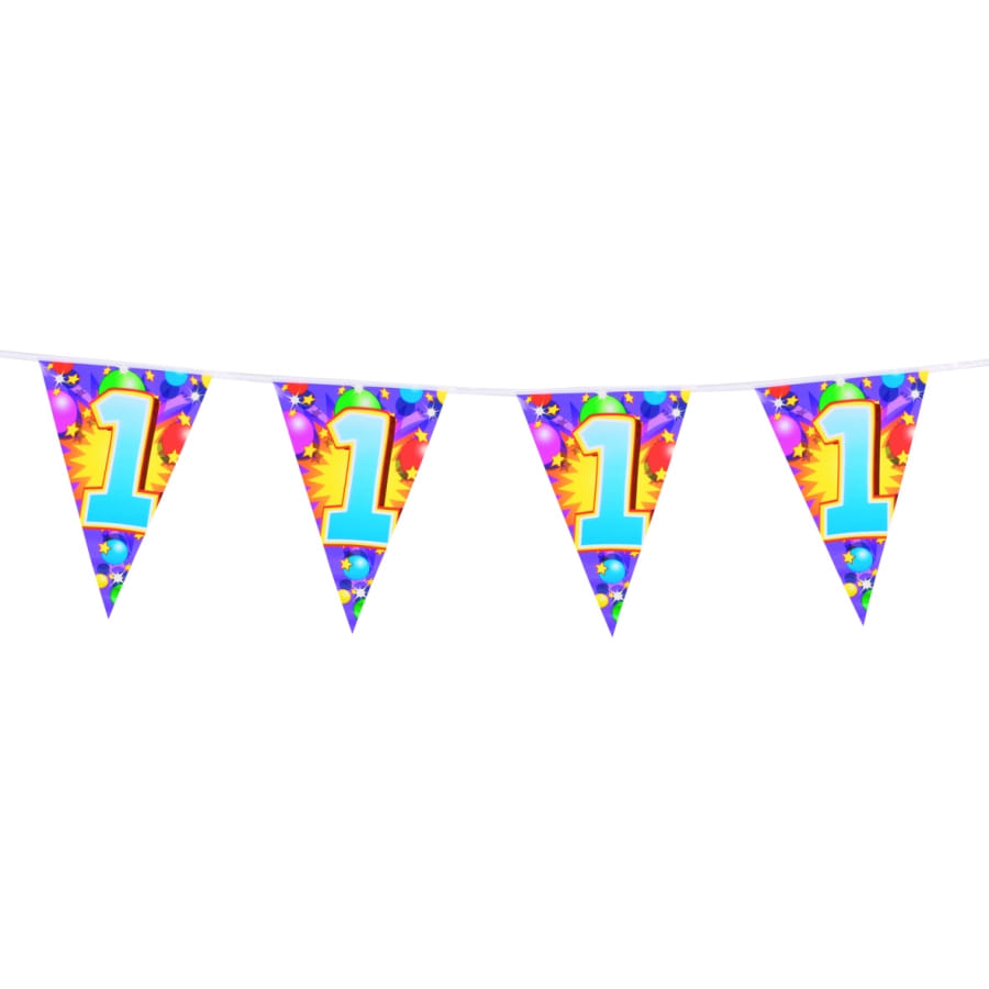 Guirlande d'anniversaire multicolore en plastique agrémentée de pavillons rectangulaires. Les pavillons mesurent chacun 20 centimètres sur 30. Ils sont disponibles en chiffre 1 ou 18. C'est l'accessoire parfait pour une fête d'anniversaire réussie.