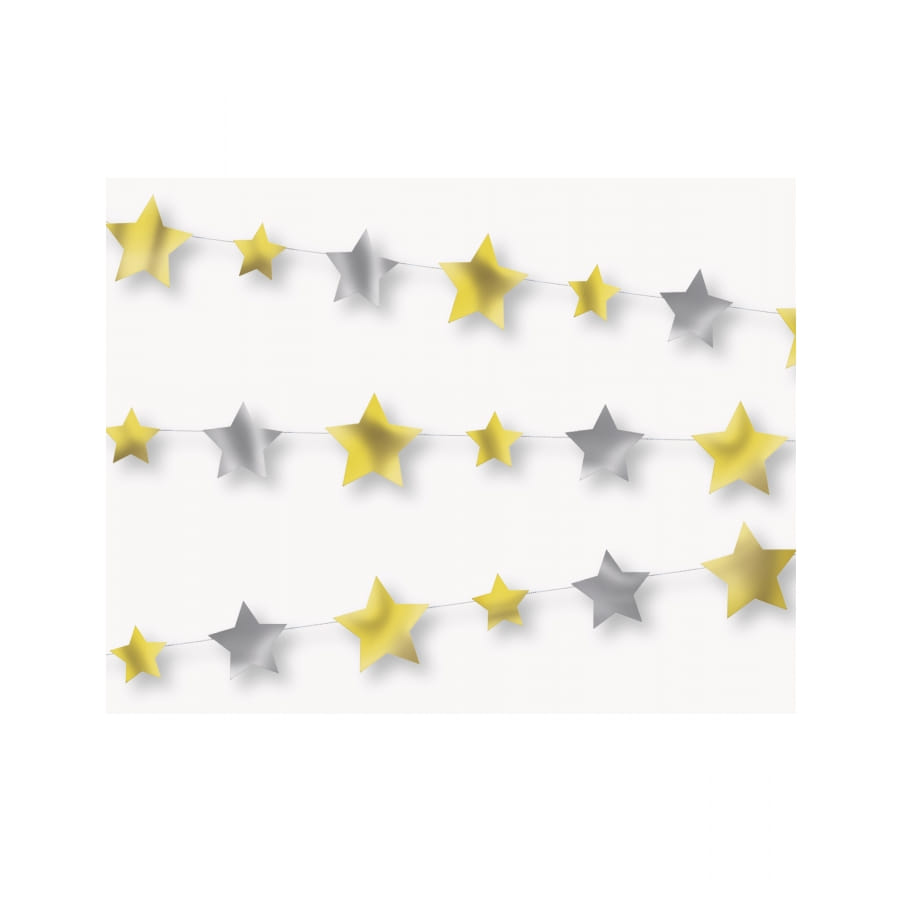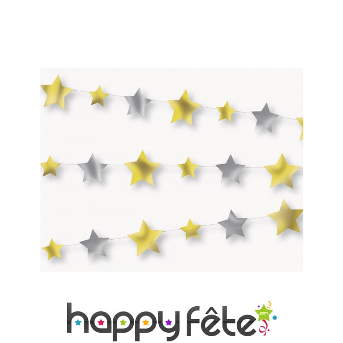 Ajoutez de la brillance sublimez une déco de Noël avec la guirlande d'étoiles argentées et dorées, 274 cm.
