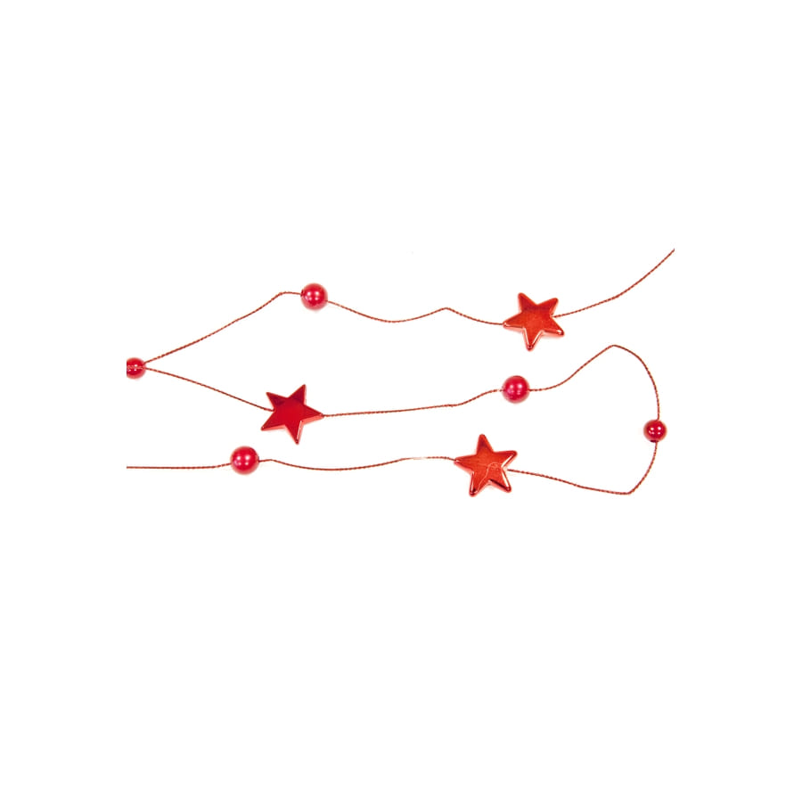 La guirlande comporte des petites étoiles rouges de 2 cm ainsi que de petites perles rouges.