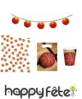 La guirlande fait 3,20 m de long et dispose de fanions en forme de ballons de basket oranges.