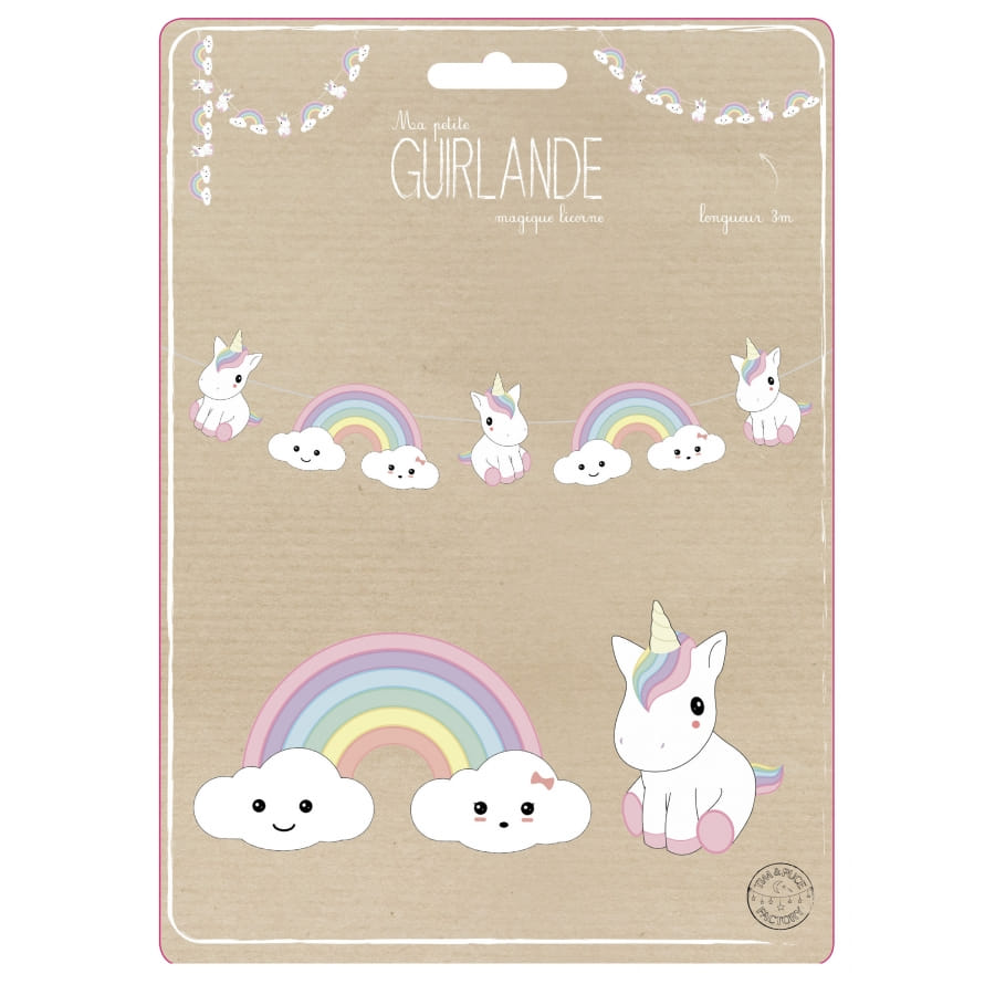 La guirlande de bébé licorne et son arc-en-ciel est longue de 3.5 m.