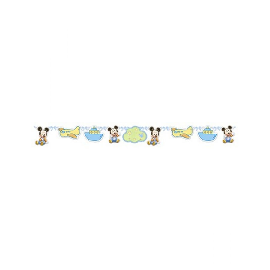 La guirlande de bébé Mickey bleue pour garçon de 1,5 cm est en carton.
