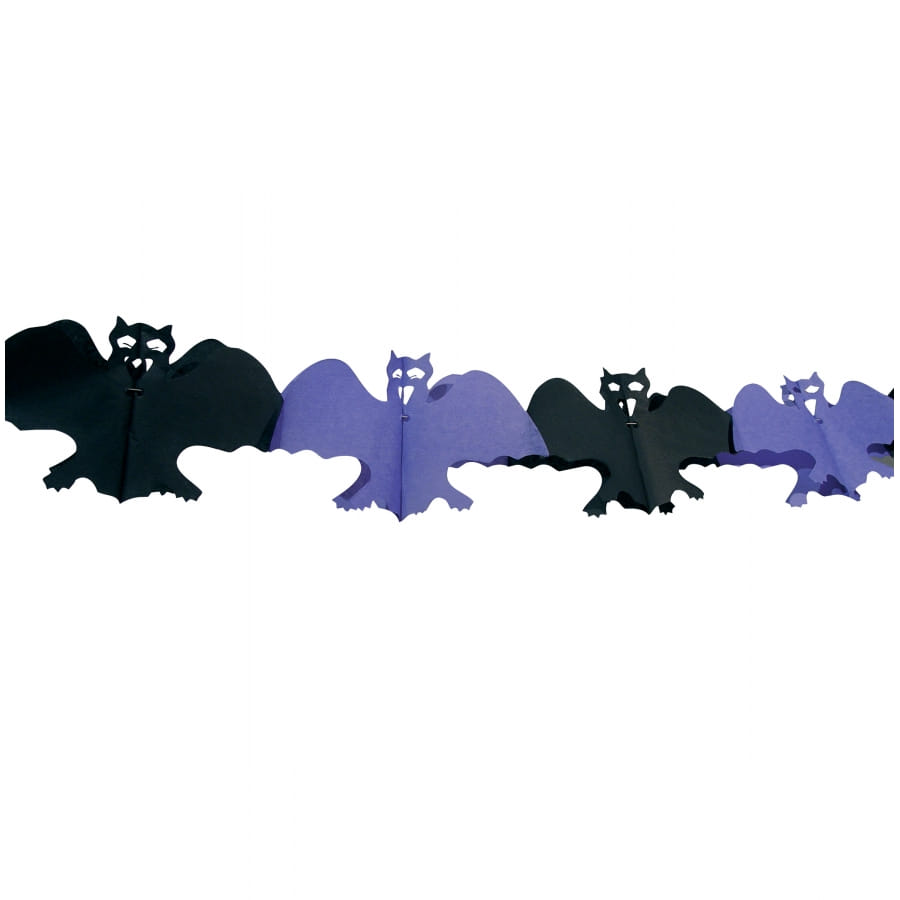 Vous voulez une idée déco originale pour accueillir la fête de morts ? Nous avons l'article qu'il vous faut. En effet, nous vous proposons la guirlande de chauve souris noire et violette, qui reste disponible sur notre site. Elle mesure au total 4 m. Vous pouvez l'accrocher dans les endroits de votre choix. Elle se présente sous forme de petites chauves-souris noires et violettes, alternées et collées les unes aux autres.