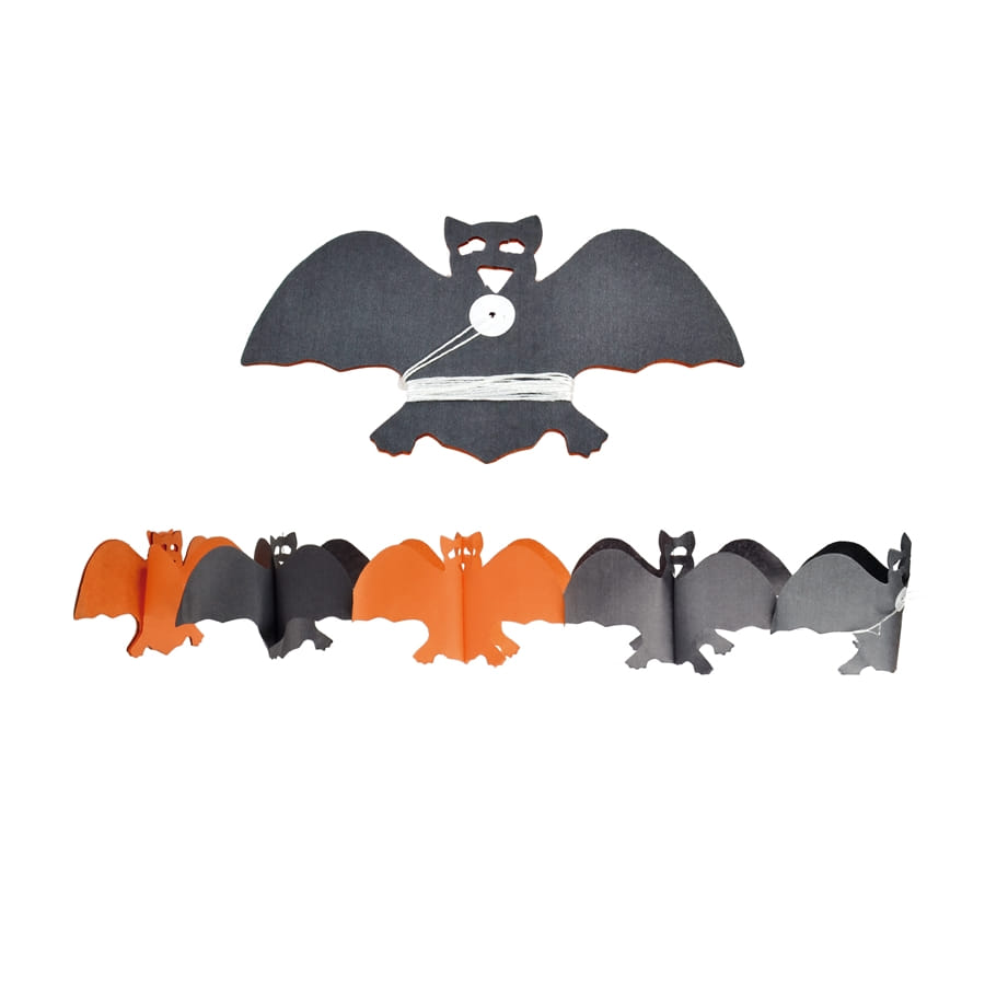 Un animal nocturne très présent pendant la période d'Halloween vous est proposé à travers cet article de décoration. Choisissez la guirlande de chauve-souris orange et noires 3m pour orner vos murs. Ce modèle est constitué par une succession de chauve-souris noires et oranges, faisant 23.5 cm x 12.5cm de dimension chacune. L'ensemble mesure 3 m de long.