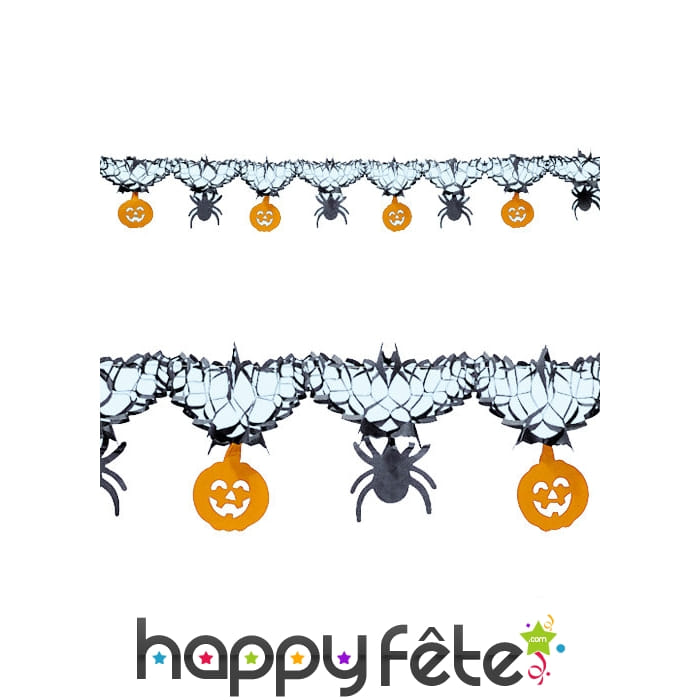 Cette guirlande se compose de fanions brillants qui imitent des toiles d'araignée.