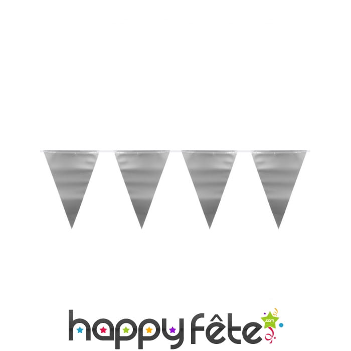 Nous parlons ici d'une guirlande longue de 6 m et composée de fanions triangulaire gris qui présentent un effet métallisé.