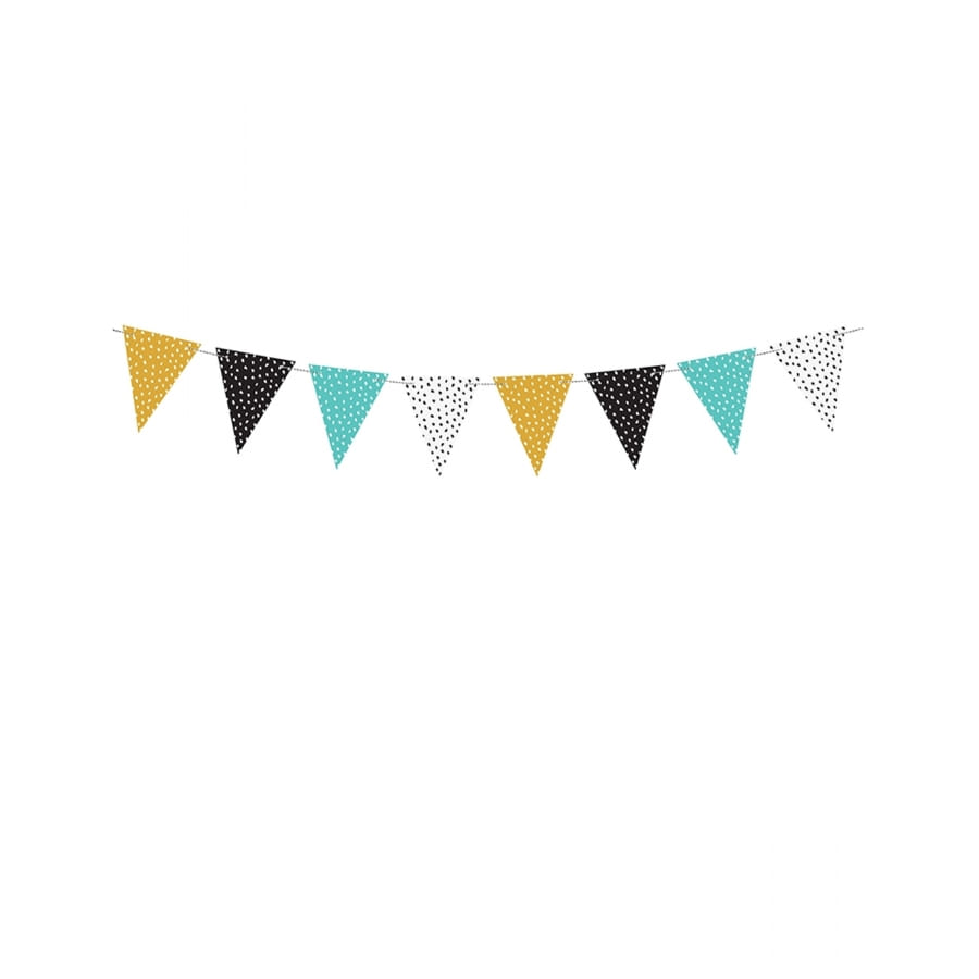 La guirlande de fanions colorée à pois de 130 cm est en carton.