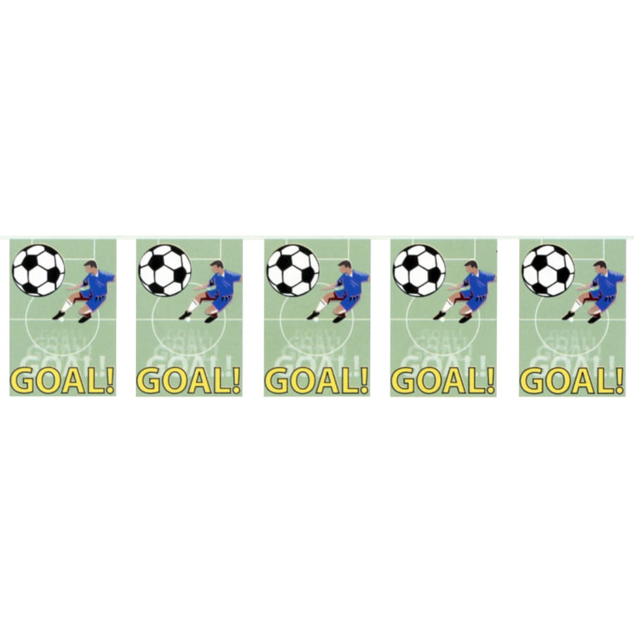 Supportez votre équipe avec cette guirlande de fanions footballeur en papier. La guirlande est ornée de 10 fanions exactement et elle mesure 5 mètres de longueur. Exprimez votre amour du foot grâce à cet accessoire!