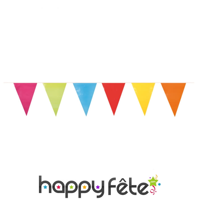 Accrochez de belles couleurs pour faire éclater la joie ! La guirlande de fanions multicolores est un article destiné à la décoration. Il s'agit d'un modèle en plastique de 10 m de long. Il est formé par 20 pavillons triangulaires multicolores, faisant 16 x 28 cm de dimension chacun. Utilisez votre belle guirlande lors d'un goûter d'anniversaire ou pour le carnaval.
