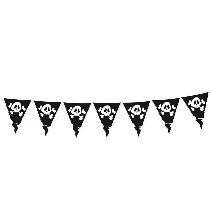 Pour une décoration de fête sous le thème Pirates ou pour Halloween, ne passez pas à côté de cette guirlande de fanions noires Pirates 3,60 m de long.