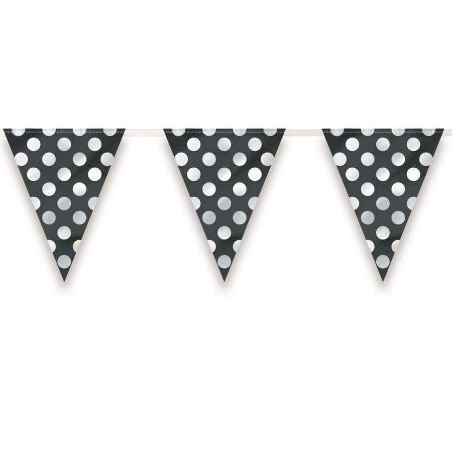 Votre décoration respectera parfaitement ce thème grâce à cette guirlande de fanions noirs à pois blancs.