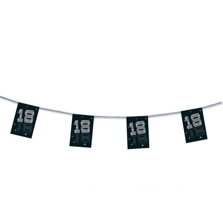 Célébrez votre majorité ou la nouvelle année en grande pompe, grâce à cette guirlande de fanions noirs imprimés argentés, 4m.